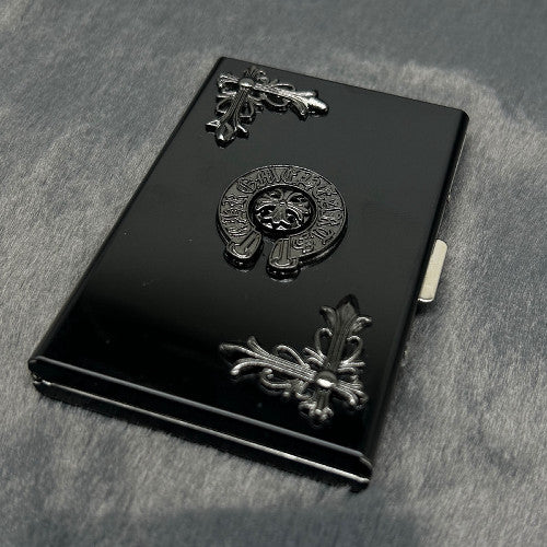 The Black Chrome Heart Card Holder Wallet features a sleek black finish with signature Chrome Heart detailing, delivering a bold gothic-luxury aesthetic. Slim, durable, and designed for everyday carry, it’s the perfect statement accessory with practical edge.