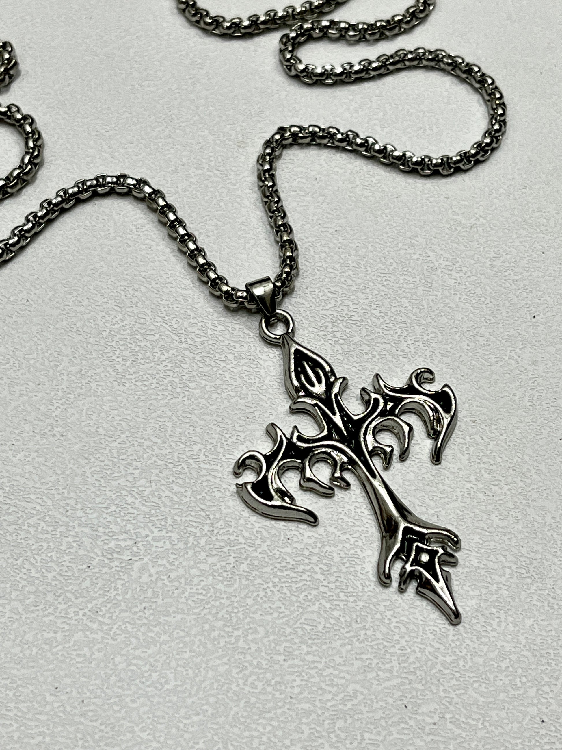 The Gothic Cryptic Cross Pendant features an intricate, cryptic-inspired cross design that evokes mystery and depth. Paired with a durable chain, it’s crafted for those who embrace gothic aesthetics with a bold, meaningful edge.
